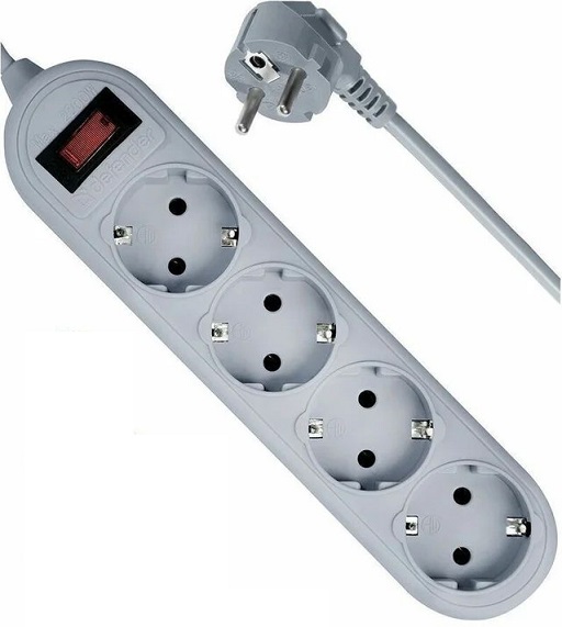 4 евророзетки с заземлением. Суммарная мощность нагрузки 2200 Вт. Максимальный ток 10 А. Длина кабеля 1,8 м. Защита от перегрузки и короткого замыкания - автоматический несгораемый предохранитель встроен в выключатель.