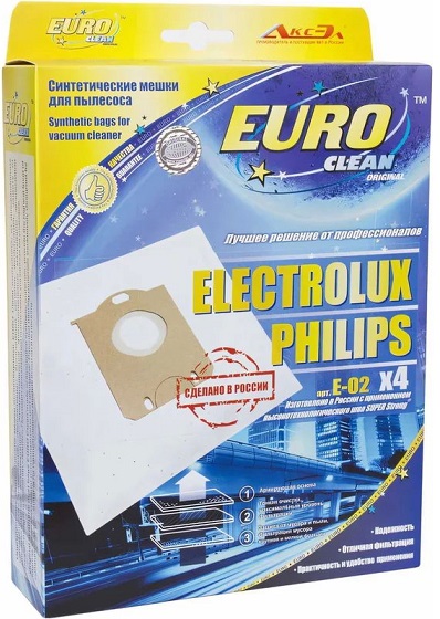 Синтетические мешки-пылесборники для пылесосов марки ELECTROLUX, AEG, ARNICA, BORK, HANSEATIC, OTTO, PHILIPS, PRIVILEG, QUELLE, SATRAP, TORNADO, VOLTA, ZANUSSI. В комплекте - 4 шт.