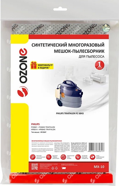 Многоразовый синтетический мешок-пылесборник для пылесосов марки PHILIPS TRIATHLON FC 6841 - FC 6845; TRIATHLON FC 6842; TRIATHLON FC 6843; TRIATHLON FC 6844; TRIATHLON HR 6814 - HR 6845; TRIATHLON HR 6815; TRIATHLON HR 6816; TRIATHLON HR 6817; TRIATHLON HR 6818; TRIATHLON HR 6819; TRIATHLON HR 6820; TRIATHLON HR 6821, ...