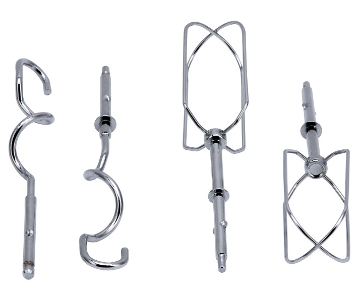 Мощность 750 Вт. 5 скоростей + турборежим. Кнопка отсоединения насадок. Насадки : крюки для замеса теста, венчики.