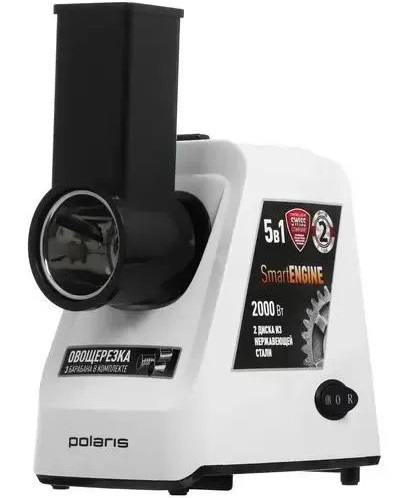 Мощность 2000 Вт. Производительность до 2 кг/мин. Функция реверса. Отсек для хранения сетевого шнура. В комплекте: два диска для фарша с диаметром отверстий 5 и 7 мм, металлический лоток, пластиковый толкатель, овощерезка, 3 барабана: крупная терка, мелкая терка, шинковка. Термозащита двигателя. Нес..