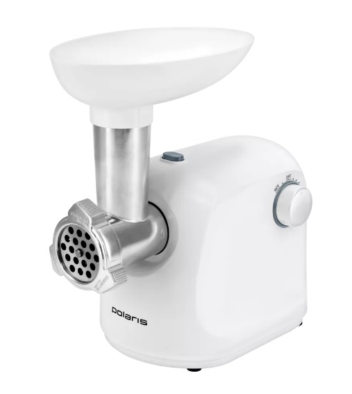 Мощность 1600 Вт. Производительность до 1,8 кг фарша в минуту. Функция реверса. Защита двигателя от перегрузки. Нескользящие ножки. В комплекте: диски для фарша с отверстиями диаметром 5 мм и 7 мм, лоток для мяса, толкатель, насадка для приготовления колбас и кеббе, овощерезка (2 барабана: крупная терка и шинковка).