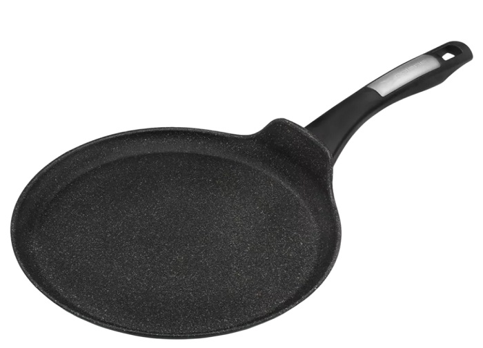 Блинная литая сковорода. Диаметр 22 см. Внутреннее трехслойное антипригарное покрытие. Термостойкое внешнее покрытие. Утолщенное дно 5 мм. Эргономичная ручка с покрытием Soft Touch. Подходит для всех видов плит, включая индукцию.