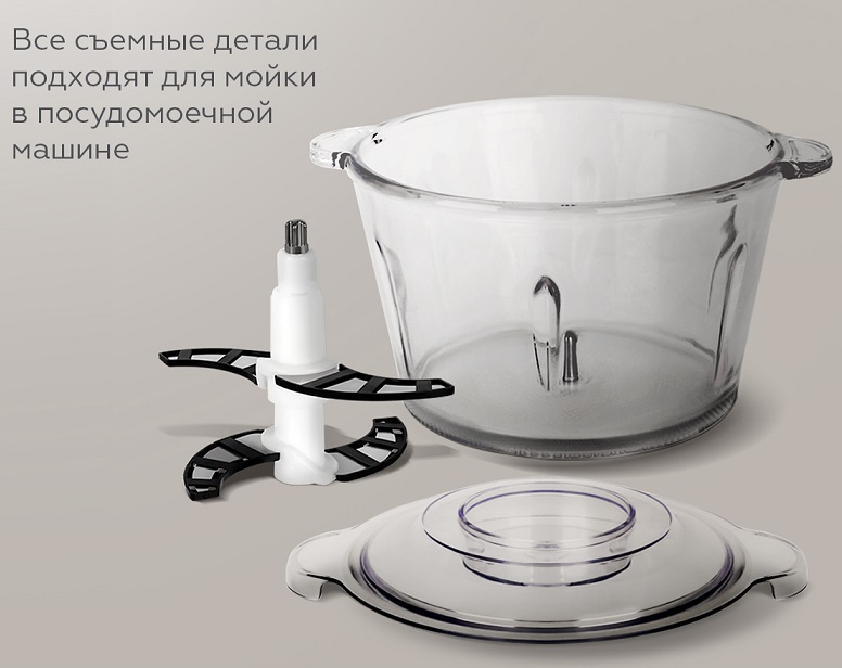 Мощность 400 Вт. Объем чаши 800 мл. Отключение при открытой крышке или перегреве. Двойной нож из нержавеющей стали. Прорезиненные ножки.