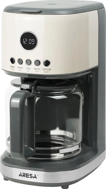 Капельная кофеварка. Мощность 1100 Вт. Объем колбы 1,8 л. Используется молотый кофе. Автоотключение.