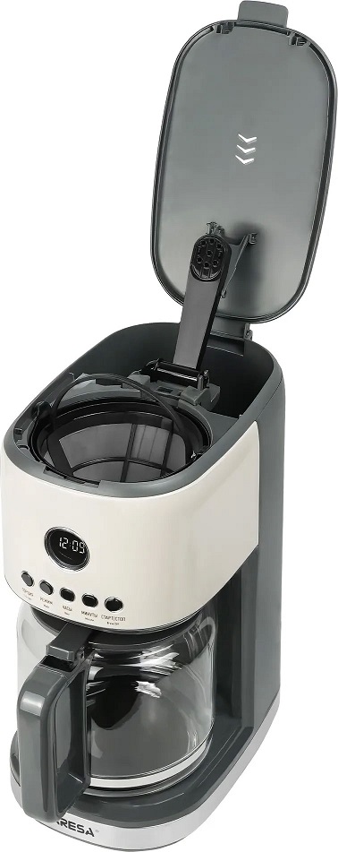 Капельная кофеварка. Используется молотый кофе. Мощность 750 Вт. Съемный резервуар для воды объемом 0,54 л. Стеклянный кувшин для кофе объемом 0,56 л. Фильтр. Шкала уровня воды. Противокапельная система. В комплекте - мерная ложечка.