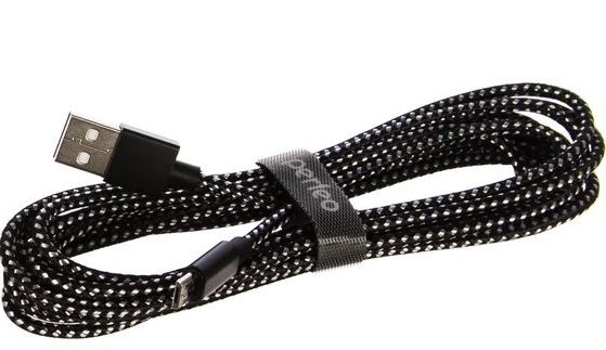 Кабель длиной 3 м в тканевой оплетке. Разъемы USB 2.0 A/microUSB.