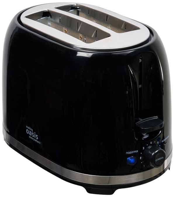Мощность 850 Вт. Механическое управление. Два слота. 7 уровней обжаривания. Автоотключение. Термоизолированный корпус. Центрирование и быстрый подъем тостов. Функция размораживания. Поднос для крошек.