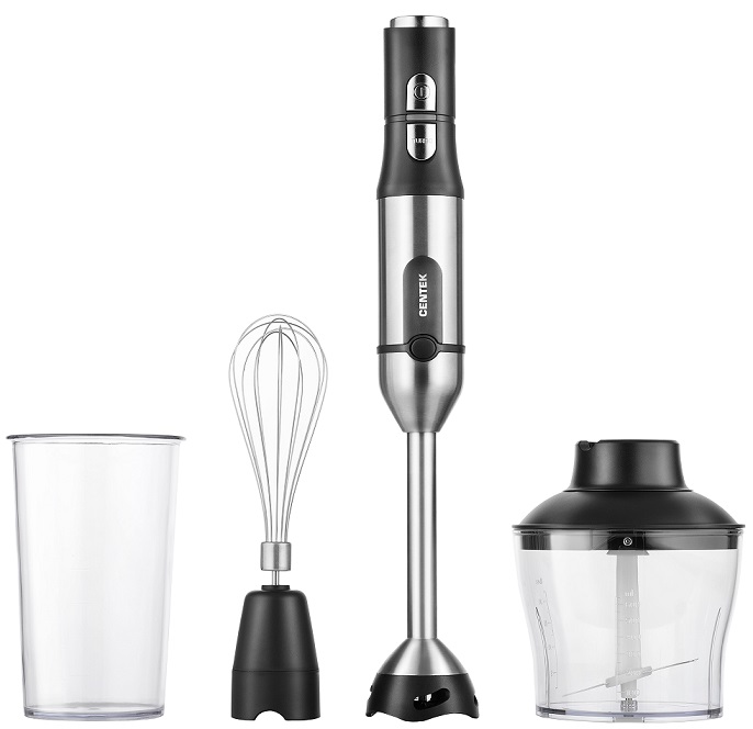 Мощность 800 Вт. Ножка блендера и лезвия из нержавеющей стали. Плавная регулировка скорости. В комплекте: стакан объёмом 700 мл, насадка-венчик, насадка для приготовления пюре, блендер, измельчитель объёмом 500 мл.