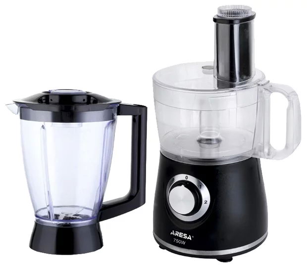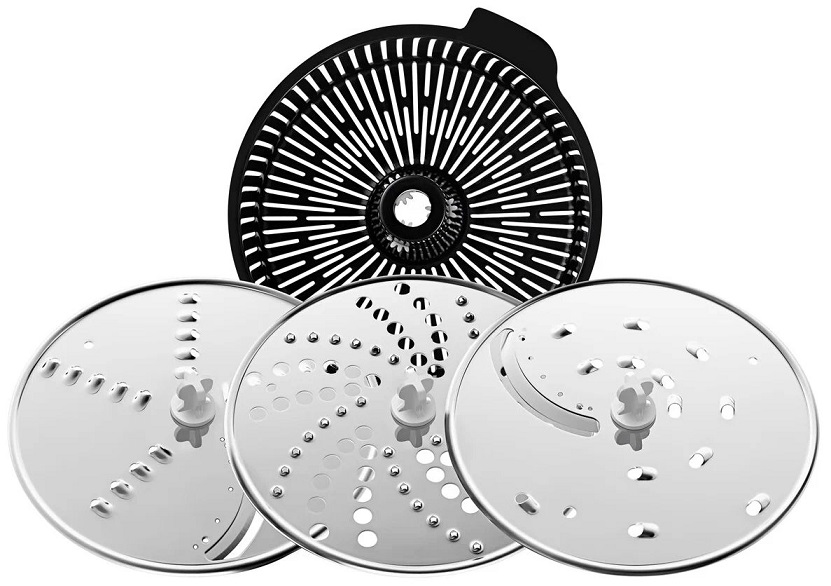 Мощность 1000 Вт. Две скорости. Импульсный режим работы. Режимы работы: блендер, цитрусовая соковыжималка, замес теста, взбивание, нарезка, шинковка, тёрка, измельчение. Чаша измельчителя объёмом 1,2 л. Кувшин блендера объёмом 1,75 л. В комплекте: венчик, насадка для замеса теста, диск для эмульсии, насадка для цитрусовых, фильтр для сока из ягод, диск-тёрка для драников, двусторонний диск тёрка/крупная нарезка, двусторонний диск шинковка/мелкая нарезка, толкатель.Защита двигателя от перегрузки. Защита от включения при неправильной сборке.