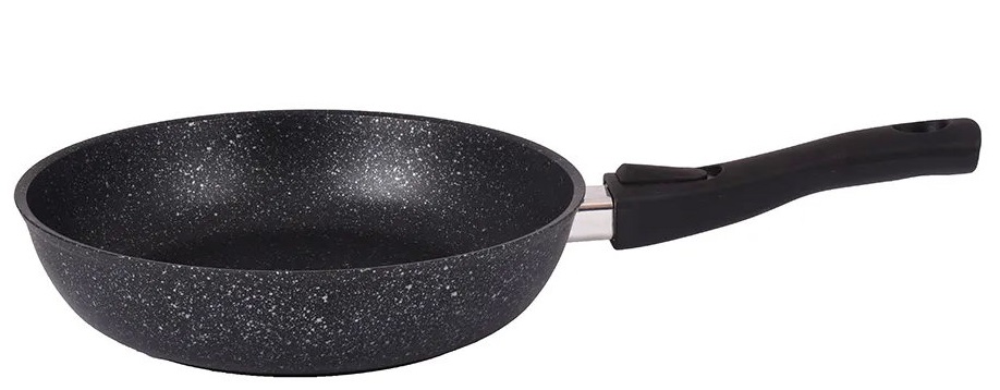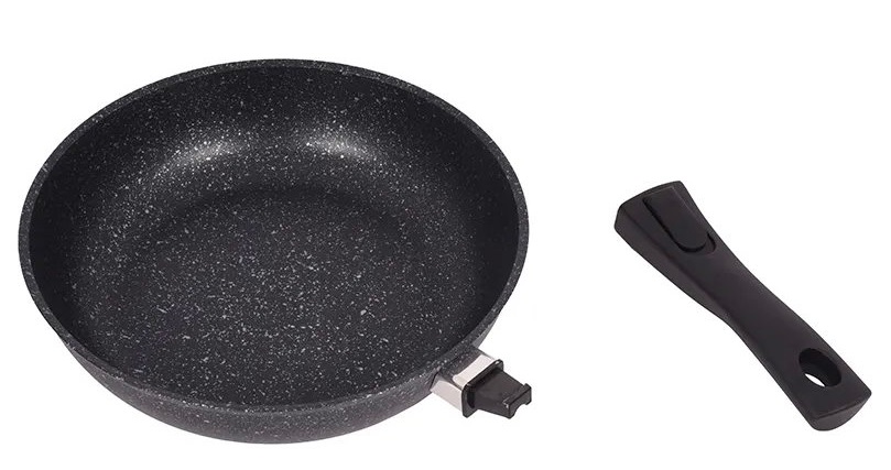 Диаметр 26 см. Съемная ручка. Внешнее термостойкое покрытие. Внутреннее антипригарное мраморное покрытие, усиленное частицами минералов. Высота бортов 6 см. Можно использовать в духовке. Можно мыть в посудомоечной машине. Подходит для всех видов плит, кроме индукции.