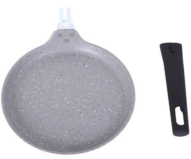 Диаметр 20 см. Можно использовать в духовом шкафу. Можно мыть в посудомоечной машине. Подходит для все видов плит, кроме индукции. Съёмная ручка. Внешнее термостойкое покрытие, внутреннее антипригарное покрытие, усиленное частицами минералов.