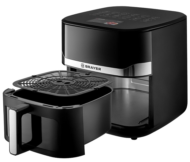 Объем 10 л. Программы: фри, мясо, голень, ребра, рыба, овощи, морепродукты, крылья. Два тэна для равномерного нагрева. Функция подогрева пищи. Электронное управление, дисплей. Регулировка температуры от +80*С до +200*С. Таймер на 1 ч. Съемная решетка с антипригарным покрытием. Звуковой сигнал готовности. Чашу не рекомендуется мыть в посудомоечной машине.
