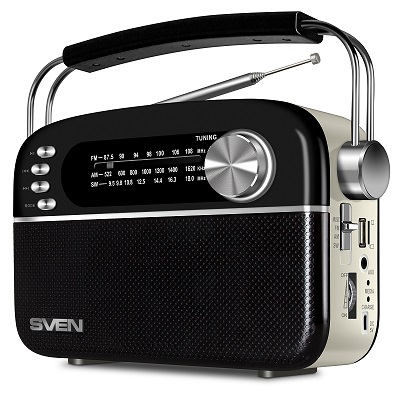 Bluetooth. Частотный диапазон: FM 87,5 - 108 мГц, AM 522 - 1620 кГц, SW 9,5 - 18 мГц. Мощность звука (RMS) 3 Вт. Воспроизведение музыки с карт памяти microSD, USB. Поддерживаемые аудиоформаты: MP3, WAV. Литий-ионный aккумулятор, 1200 мA/ч. Время работы от аккумулятора - 18 ч. в режиме FM-радио, 30% уровень громкости.