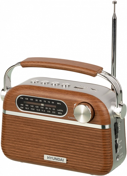 Полноразмерный радиоприёмник с Bluetooth в ретро-стиле. Работает в FM- диапазоне 87-108 мГц, AM 530-1600 кГц, SW 5,9-18 мГц. Воспроизведение MP3-файлов с карт памяти microSD, USB-флэшки, через AUX-вход. Телескопическая антенна. Встроенная аккумуляторная батарея. Радиус действия Bluetooth до 10 м. Ра..